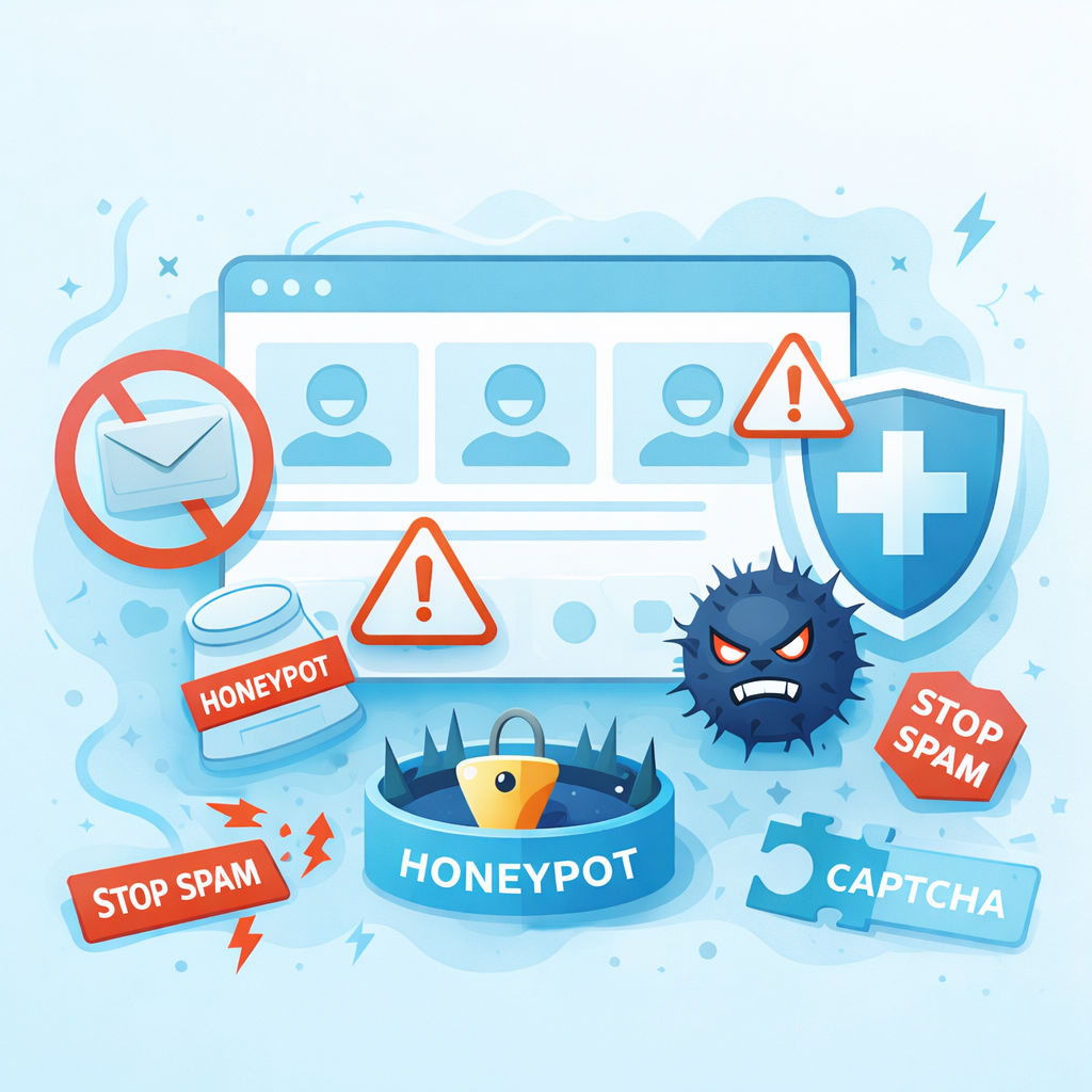 A strong anti-spam setup is layered: honeypot + modern CAPTCHA + server-side filtering + rate limiting + verification. The goal isn’t only to block bots—it’s to keep the experience smooth for real users while quietly stopping automated abuse.